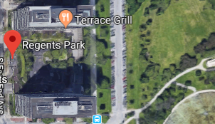 | Google Maps & KRM, Satellite View of Regents Park with Labels (2019) |